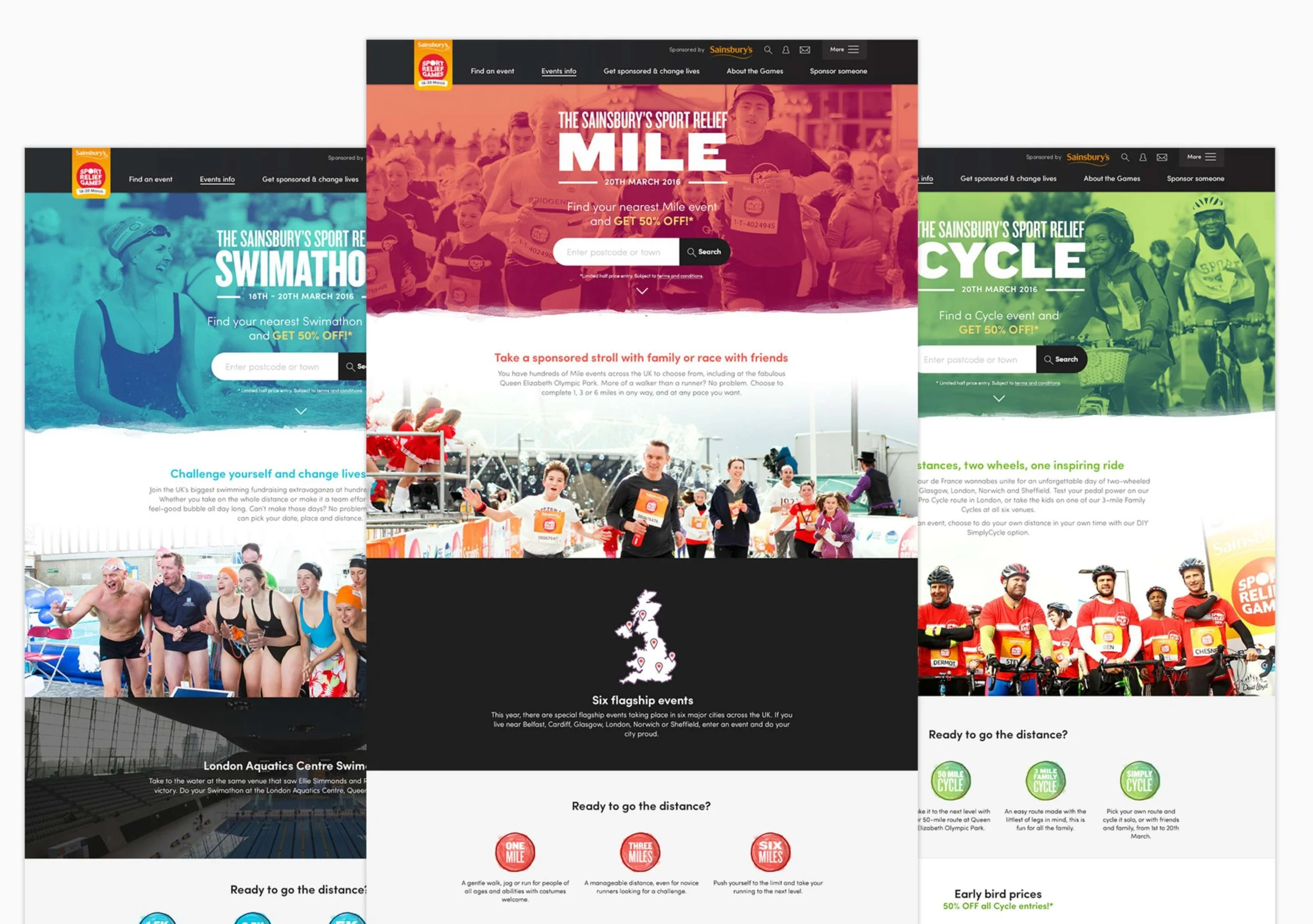 Working with corporate partners including Sainsbury’s, to deliver branding across the Sainsbury’s Sport Relief Mile. Covering website-specific event pages for running, swimming and cycling. I managed the capture of content to enhance the fundraising offering to a wide range of participants across the three sports. I commissioned shoots across the UK delivering models, locations, risk assessments, and rights purchases. Ensuring there was clothing and props required for each shoot to deliver on brand, on schedule and within budget.